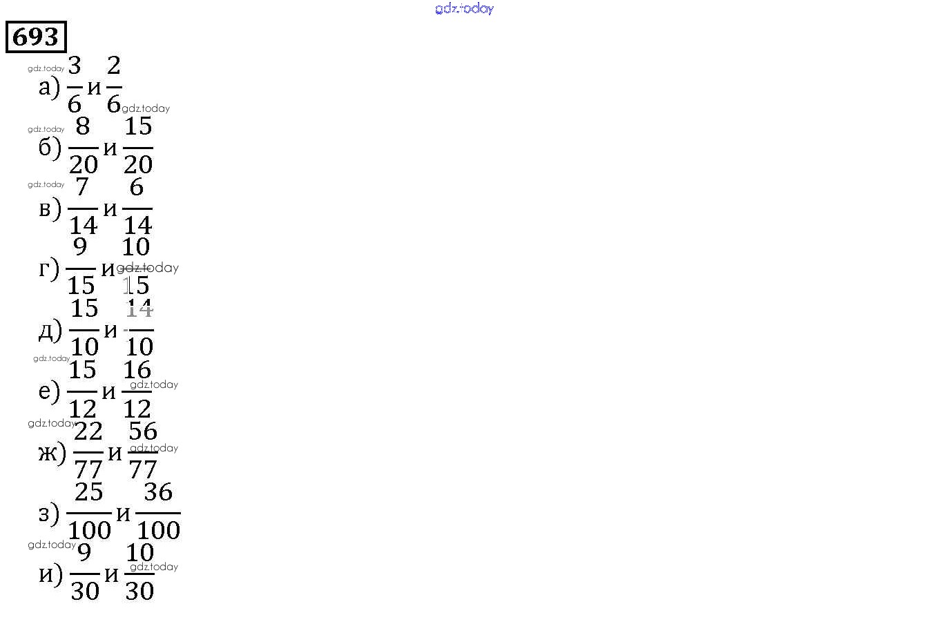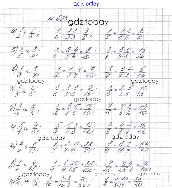 Ответы к 8.4. Приведение дробей к общему знаменателю Глава 8. Дроби 693 Учебнику по Математике для 5 класса Дорофеев, Шарыгин Просвещение 2015