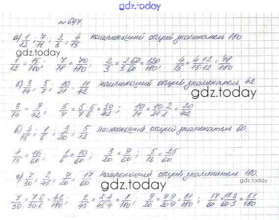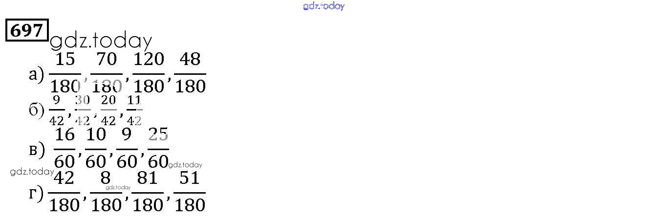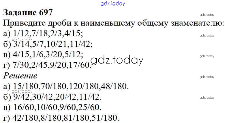 На страницах сайта gdz.today вы найдете учебный и вспомогательный материал, направленный на улучшения знаний школьной программы. ГДЗ - онлайн мир знаний 8.4. Приведение дробей к общему знаменателю Глава 8. Дроби 697 Учебнику по Математике для 5 класса Дорофеев, Шарыгин Просвещение 2015