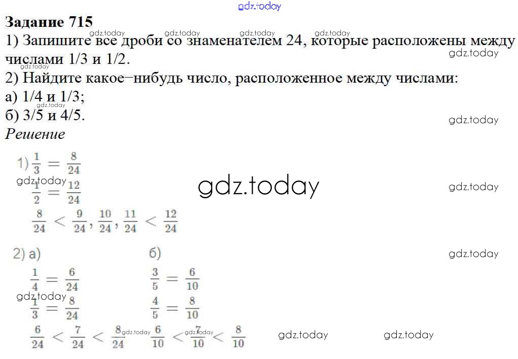 На страницах сайта gdz.today вы найдете учебный и вспомогательный материал, направленный на улучшения знаний школьной программы. ГДЗ - онлайн мир знаний 8.5. Сравнение дробей Глава 8. Дроби 715 Учебнику по Математике для 5 класса Дорофеев, Шарыгин Просвещение 2015
