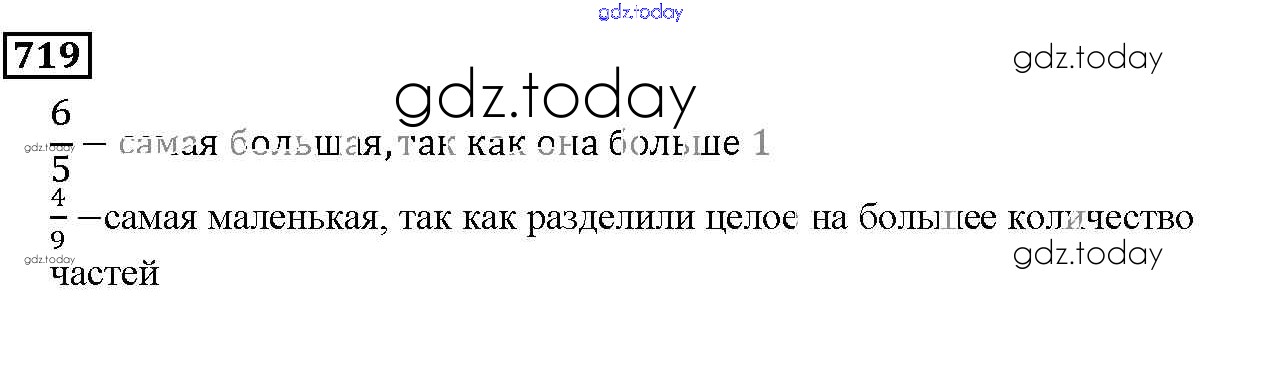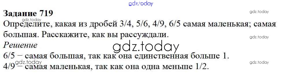 На страницах сайта gdz.today вы найдете учебный и вспомогательный материал, направленный на улучшения знаний школьной программы. ГДЗ - онлайн мир знаний 8.5. Сравнение дробей Глава 8. Дроби 719 Учебнику по Математике для 5 класса Дорофеев, Шарыгин Просвещение 2015