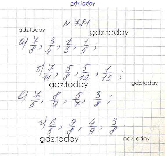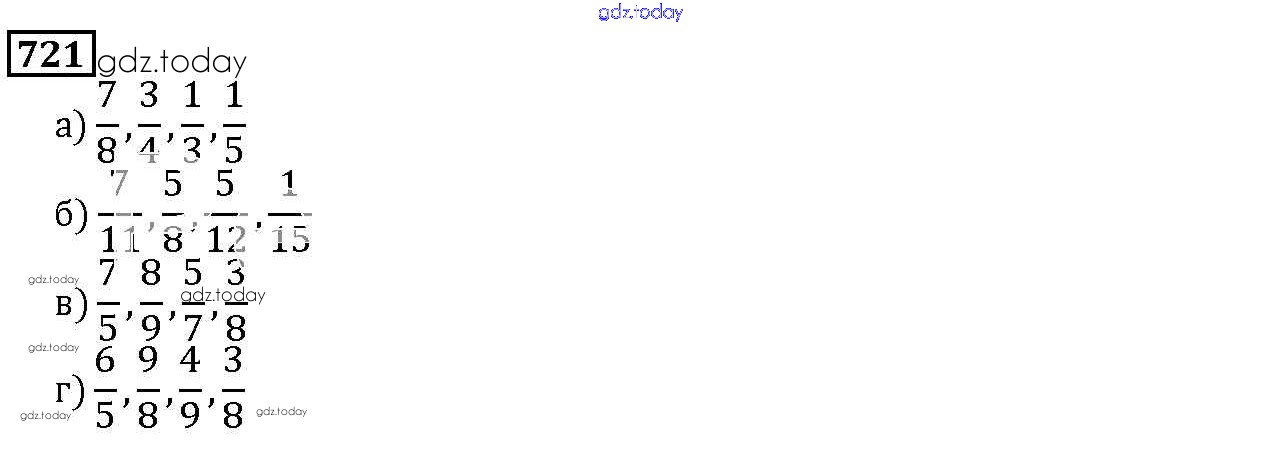 Ответы к 8.5. Сравнение дробей Глава 8. Дроби 721 Учебнику по Математике для 5 класса Дорофеев, Шарыгин Просвещение 2015