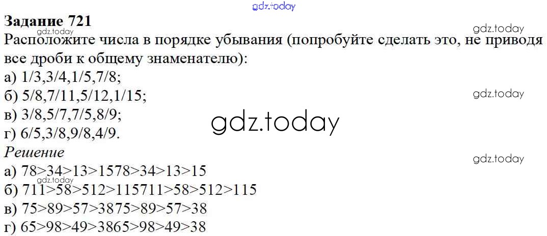 На страницах сайта gdz.today вы найдете учебный и вспомогательный материал, направленный на улучшения знаний школьной программы. ГДЗ - онлайн мир знаний 8.5. Сравнение дробей Глава 8. Дроби 721 Учебнику по Математике для 5 класса Дорофеев, Шарыгин Просвещение 2015