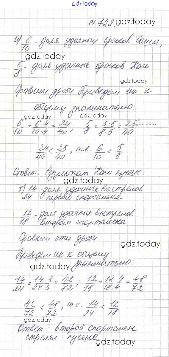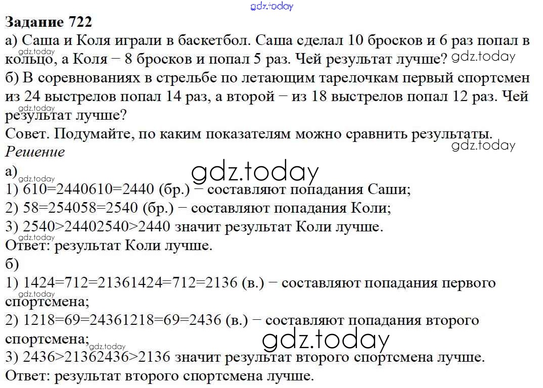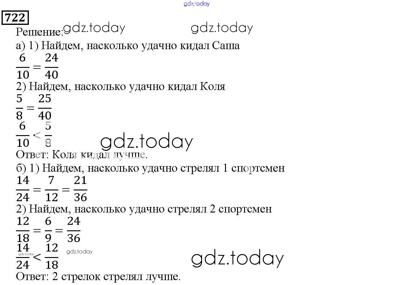 На страницах сайта gdz.today вы найдете учебный и вспомогательный материал, направленный на улучшения знаний школьной программы. ГДЗ - онлайн мир знаний 8.5. Сравнение дробей Глава 8. Дроби 722 Учебнику по Математике для 5 класса Дорофеев, Шарыгин Просвещение 2015