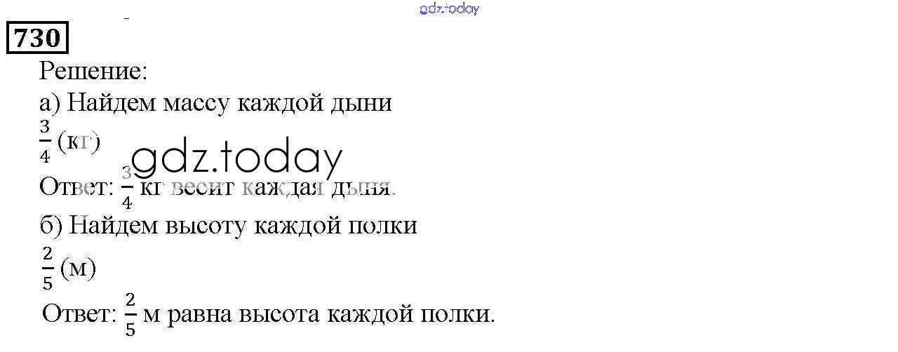 На страницах сайта gdz.today вы найдете учебный и вспомогательный материал, направленный на улучшения знаний школьной программы. ГДЗ - онлайн мир знаний 8.6. Натуральные числа и дроби Глава 8. Дроби 730 Учебнику по Математике для 5 класса Дорофеев, Шарыгин Просвещение 2015
