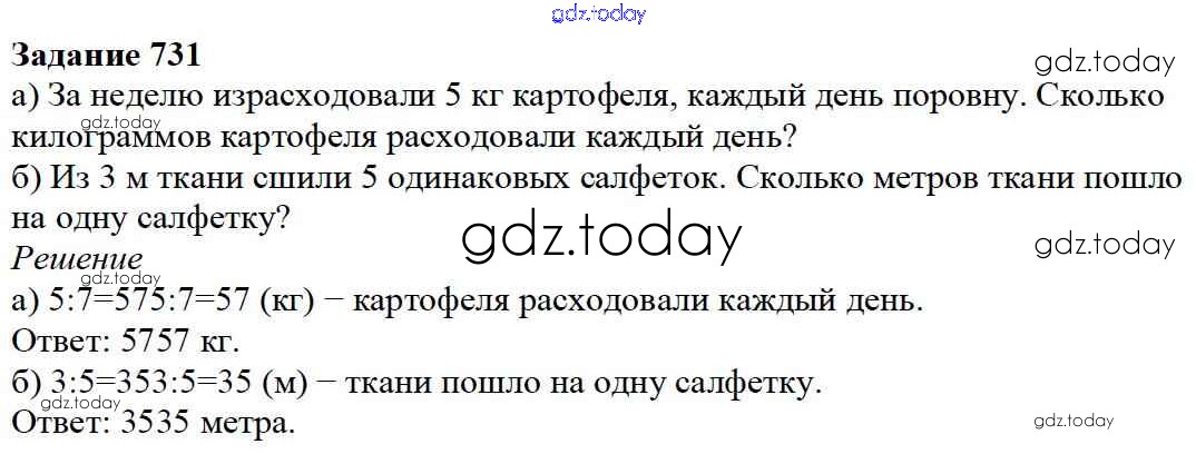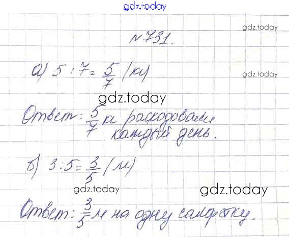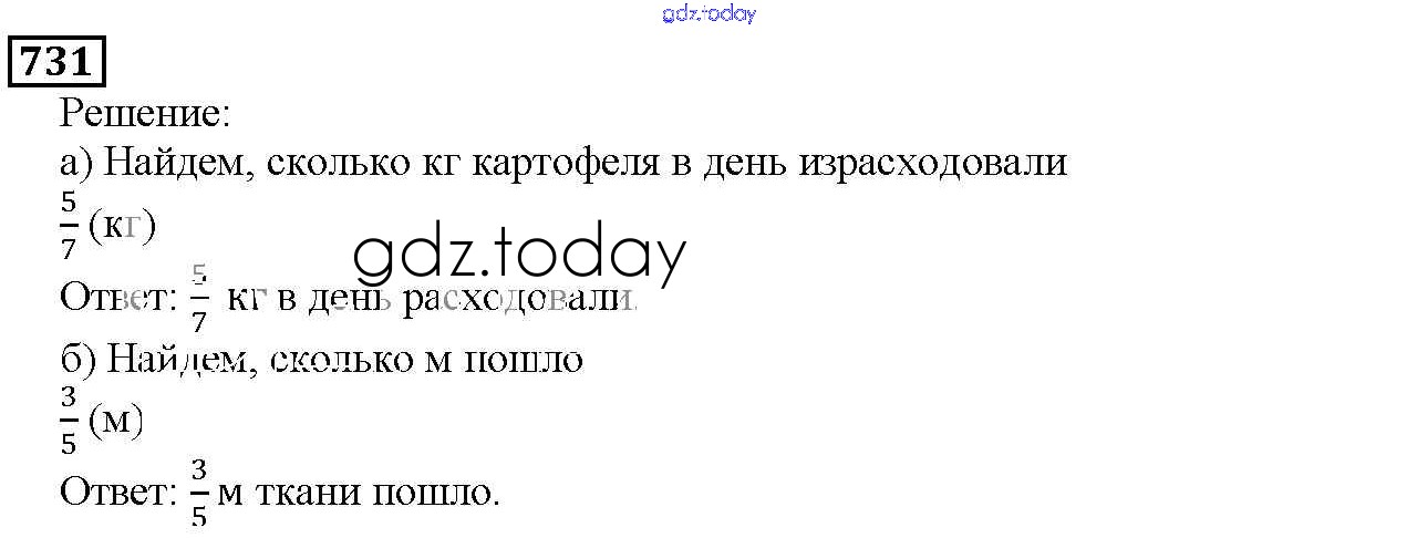 На страницах сайта gdz.today вы найдете учебный и вспомогательный материал, направленный на улучшения знаний школьной программы. ГДЗ - онлайн мир знаний 8.6. Натуральные числа и дроби Глава 8. Дроби 731 Учебнику по Математике для 5 класса Дорофеев, Шарыгин Просвещение 2015