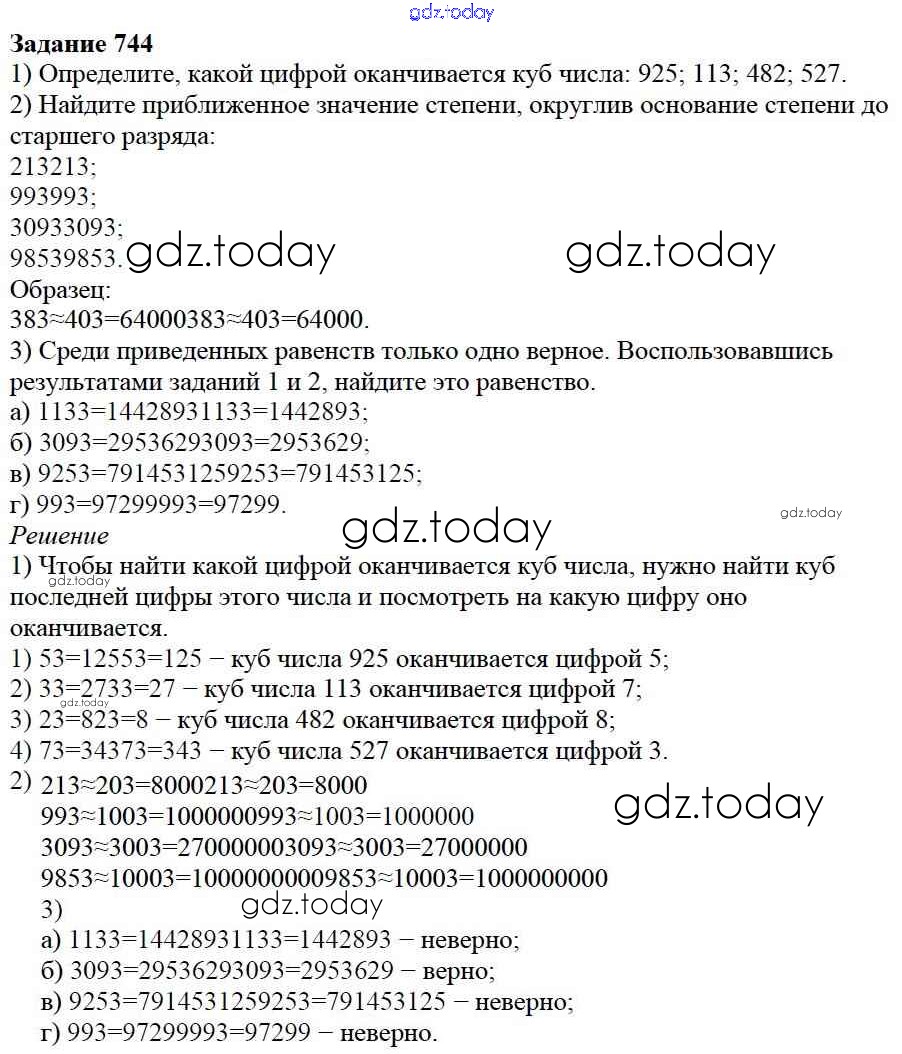 На страницах сайта gdz.today вы найдете учебный и вспомогательный материал, направленный на улучшения знаний школьной программы. ГДЗ - онлайн мир знаний 8.6. Натуральные числа и дроби Глава 8. Дроби 744 Учебнику по Математике для 5 класса Дорофеев, Шарыгин Просвещение 2015