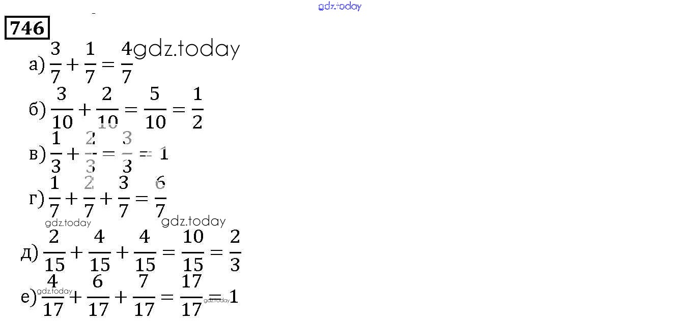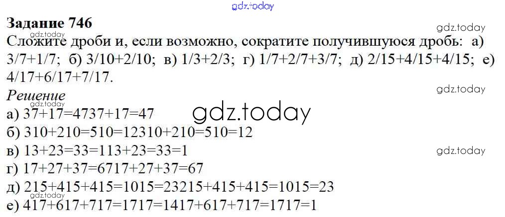 На страницах сайта gdz.today вы найдете учебный и вспомогательный материал, направленный на улучшения знаний школьной программы. ГДЗ - онлайн мир знаний 9.1. Сложение и вычитание дробей Глава 9. Действия с дробями 746 Учебнику по Математике для 5 класса Дорофеев, Шарыгин Просвещение 2015