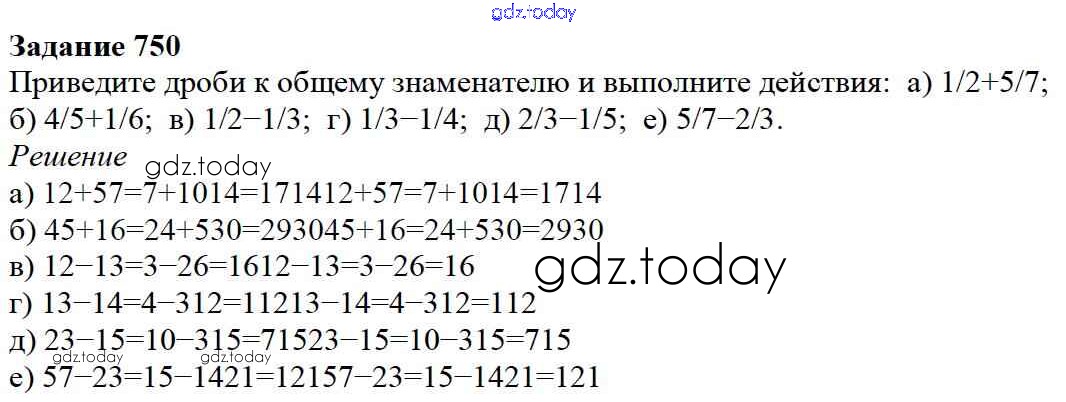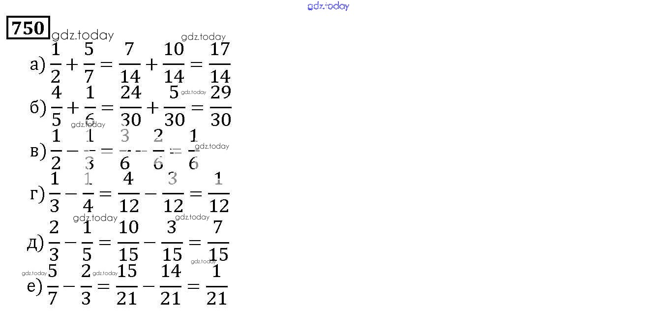 На страницах сайта gdz.today вы найдете учебный и вспомогательный материал, направленный на улучшения знаний школьной программы. ГДЗ - онлайн мир знаний 9.1. Сложение и вычитание дробей Глава 9. Действия с дробями 750 Учебнику по Математике для 5 класса Дорофеев, Шарыгин Просвещение 2015