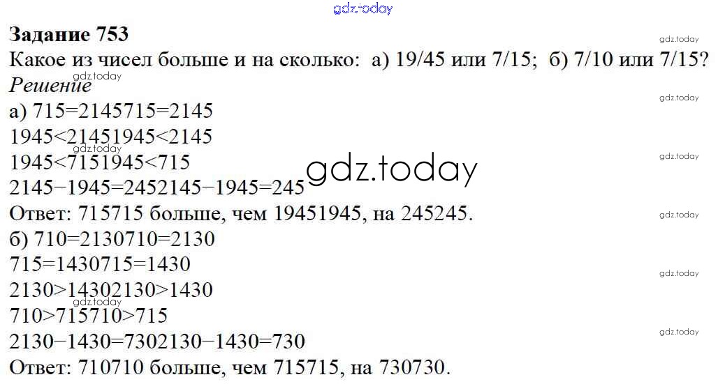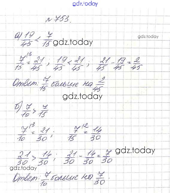 На страницах сайта gdz.today вы найдете учебный и вспомогательный материал, направленный на улучшения знаний школьной программы. ГДЗ - онлайн мир знаний 9.1. Сложение и вычитание дробей Глава 9. Действия с дробями 753 Учебнику по Математике для 5 класса Дорофеев, Шарыгин Просвещение 2015