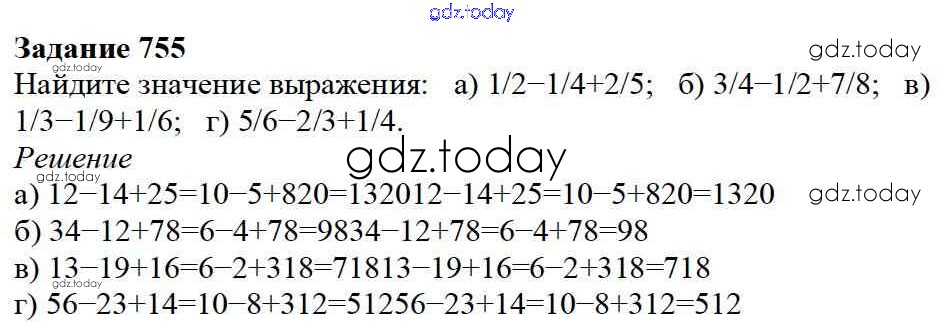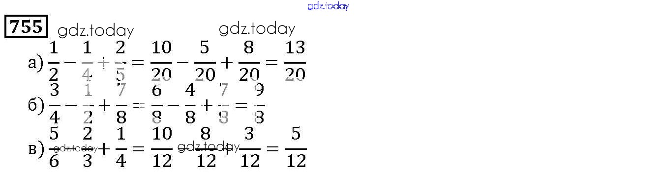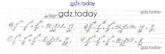 На страницах сайта gdz.today вы найдете учебный и вспомогательный материал, направленный на улучшения знаний школьной программы. ГДЗ - онлайн мир знаний 9.1. Сложение и вычитание дробей Глава 9. Действия с дробями 755 Учебнику по Математике для 5 класса Дорофеев, Шарыгин Просвещение 2015