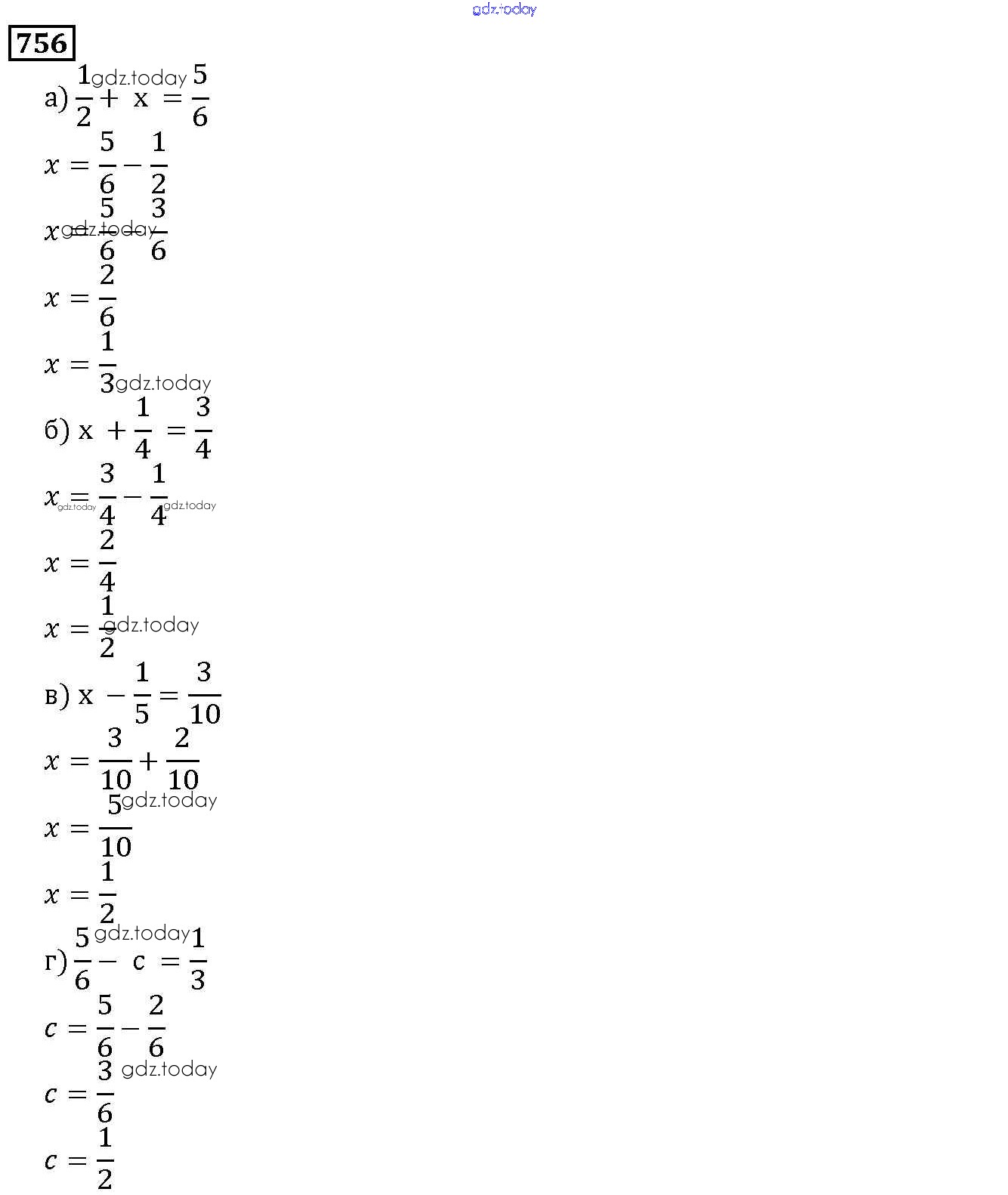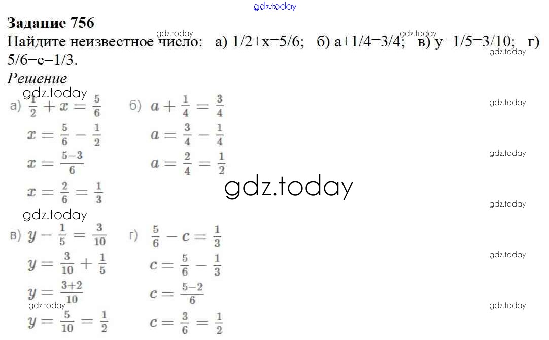 На страницах сайта gdz.today вы найдете учебный и вспомогательный материал, направленный на улучшения знаний школьной программы. ГДЗ - онлайн мир знаний 9.1. Сложение и вычитание дробей Глава 9. Действия с дробями 756 Учебнику по Математике для 5 класса Дорофеев, Шарыгин Просвещение 2015