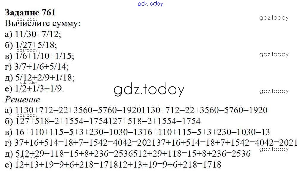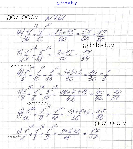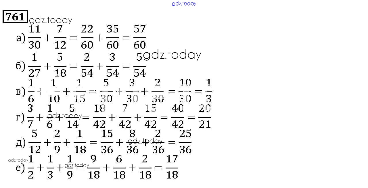 На страницах сайта gdz.today вы найдете учебный и вспомогательный материал, направленный на улучшения знаний школьной программы. ГДЗ - онлайн мир знаний 9.1. Сложение и вычитание дробей Глава 9. Действия с дробями 761 Учебнику по Математике для 5 класса Дорофеев, Шарыгин Просвещение 2015