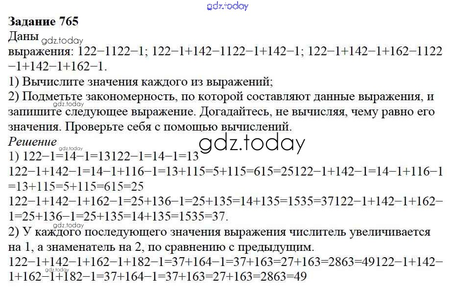 На страницах сайта gdz.today вы найдете учебный и вспомогательный материал, направленный на улучшения знаний школьной программы. ГДЗ - онлайн мир знаний 9.1. Сложение и вычитание дробей Глава 9. Действия с дробями 765 Учебнику по Математике для 5 класса Дорофеев, Шарыгин Просвещение 2015