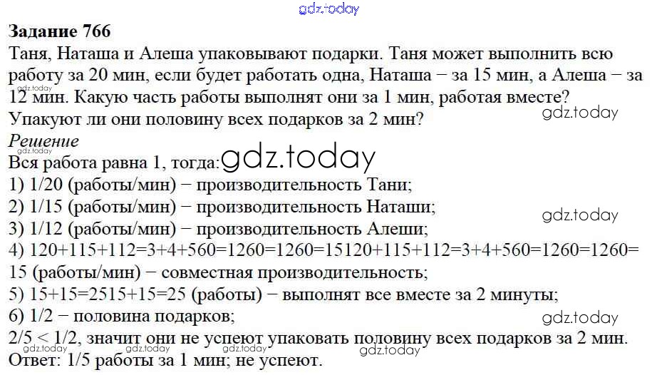 На страницах сайта gdz.today вы найдете учебный и вспомогательный материал, направленный на улучшения знаний школьной программы. ГДЗ - онлайн мир знаний 9.1. Сложение и вычитание дробей Глава 9. Действия с дробями 766 Учебнику по Математике для 5 класса Дорофеев, Шарыгин Просвещение 2015