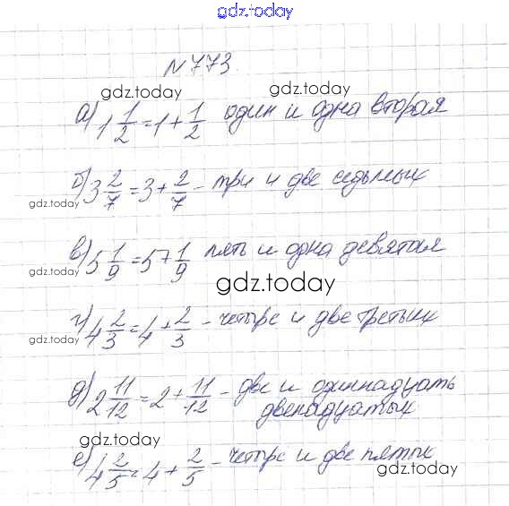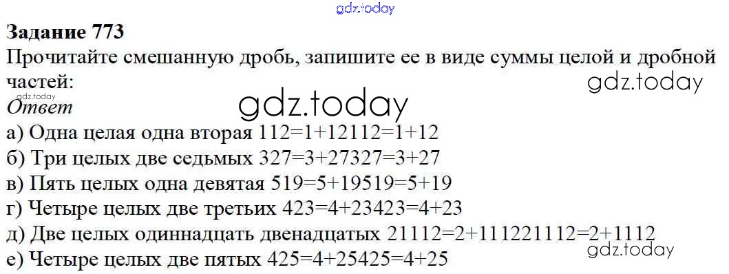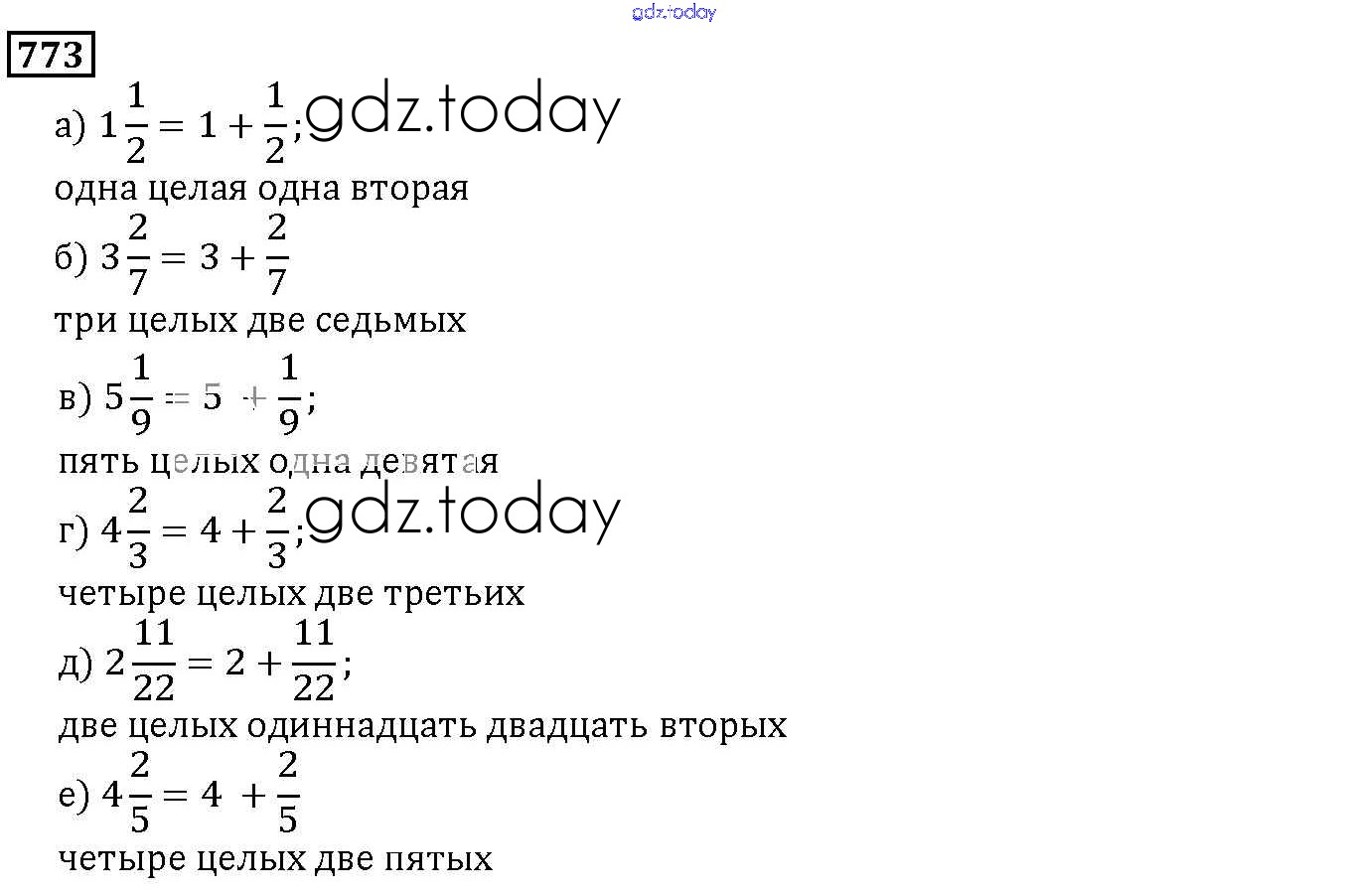 На страницах сайта gdz.today вы найдете учебный и вспомогательный материал, направленный на улучшения знаний школьной программы. ГДЗ - онлайн мир знаний 9.2. Смешанные дроби Глава 9. Действия с дробями 773 Учебнику по Математике для 5 класса Дорофеев, Шарыгин Просвещение 2015