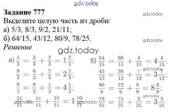 На страницах сайта gdz.today вы найдете учебный и вспомогательный материал, направленный на улучшения знаний школьной программы. ГДЗ - онлайн мир знаний 9.2. Смешанные дроби Глава 9. Действия с дробями 777 Учебнику по Математике для 5 класса Дорофеев, Шарыгин Просвещение 2015