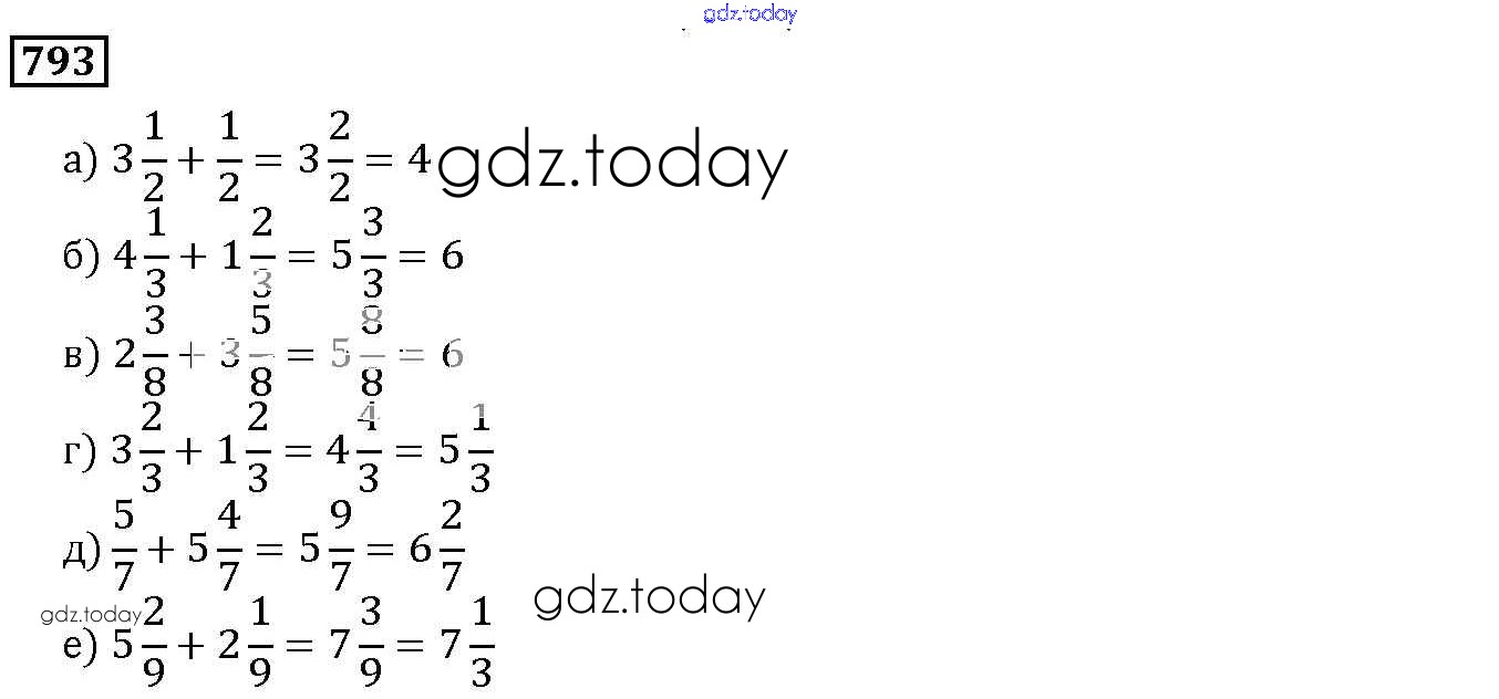 На страницах сайта gdz.today вы найдете учебный и вспомогательный материал, направленный на улучшения знаний школьной программы. ГДЗ - онлайн мир знаний 9.3. Сложение и вычитание смешанных дробей Глава 9. Действия с дробями 793 Учебнику по Математике для 5 класса Дорофеев, Шарыгин Просвещение 2015