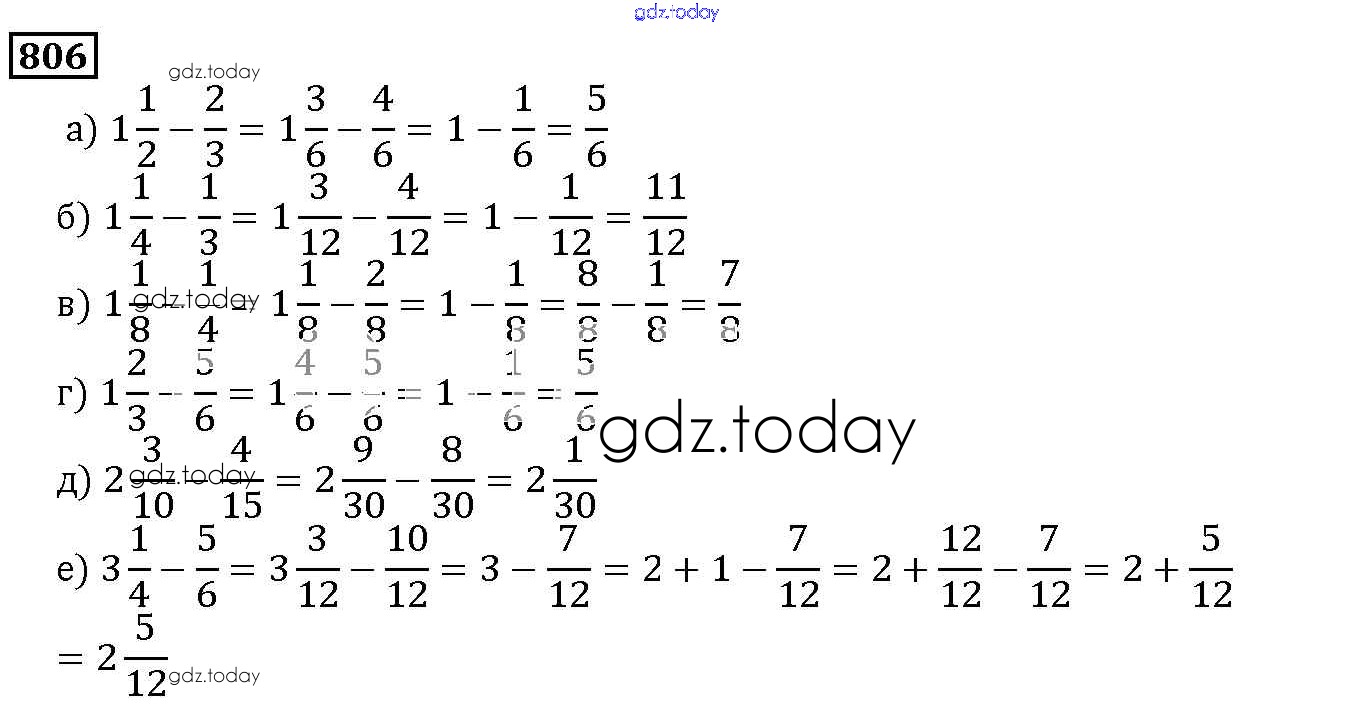 На страницах сайта gdz.today вы найдете учебный и вспомогательный материал, направленный на улучшения знаний школьной программы. ГДЗ - онлайн мир знаний 9.3. Сложение и вычитание смешанных дробей Глава 9. Действия с дробями 806 Учебнику по Математике для 5 класса Дорофеев, Шарыгин Просвещение 2015