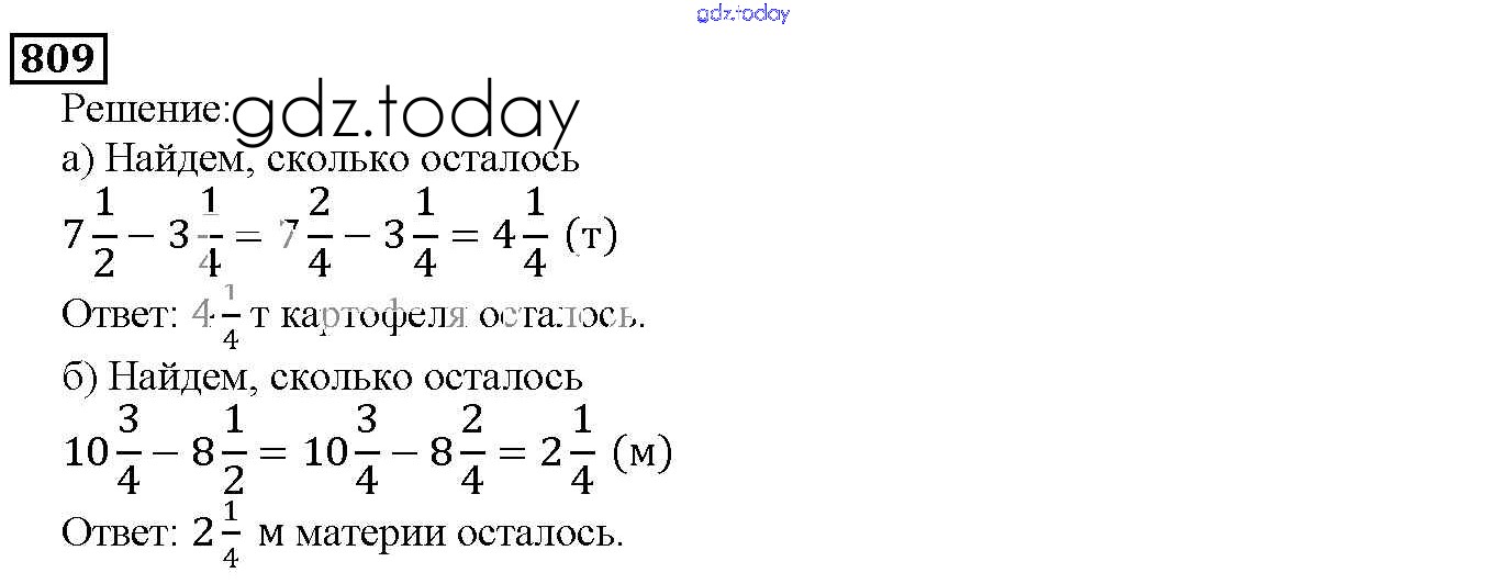 На страницах сайта gdz.today вы найдете учебный и вспомогательный материал, направленный на улучшения знаний школьной программы. ГДЗ - онлайн мир знаний 9.3. Сложение и вычитание смешанных дробей Глава 9. Действия с дробями 809 Учебнику по Математике для 5 класса Дорофеев, Шарыгин Просвещение 2015