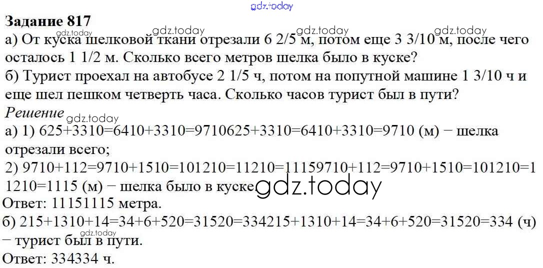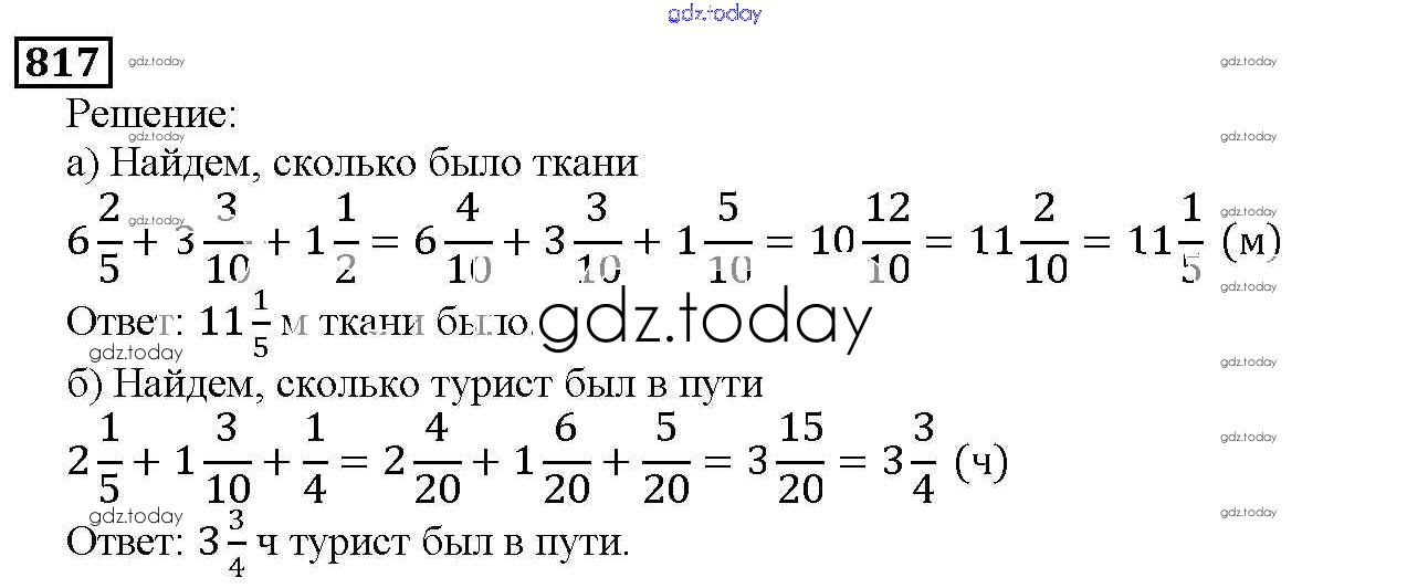 На страницах сайта gdz.today вы найдете учебный и вспомогательный материал, направленный на улучшения знаний школьной программы. ГДЗ - онлайн мир знаний 9.3. Сложение и вычитание смешанных дробей Глава 9. Действия с дробями 817 Учебнику по Математике для 5 класса Дорофеев, Шарыгин Просвещение 2015