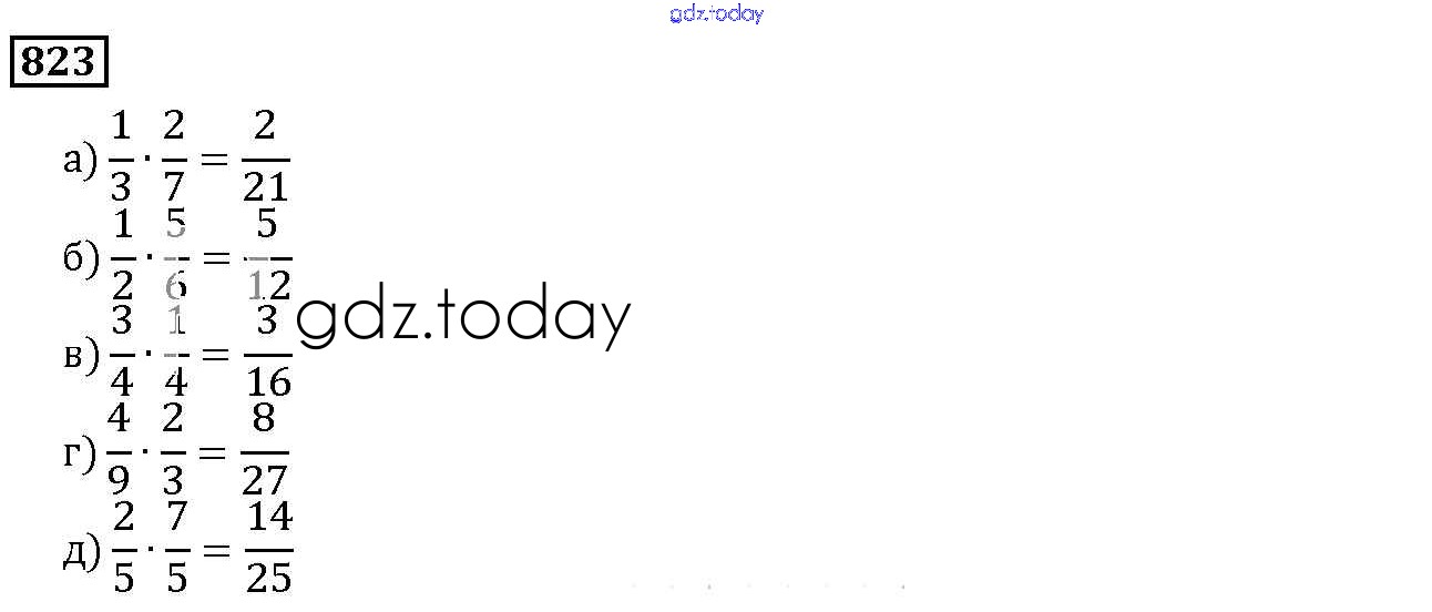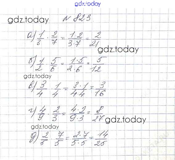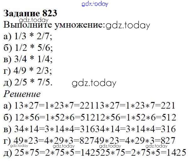 На страницах сайта gdz.today вы найдете учебный и вспомогательный материал, направленный на улучшения знаний школьной программы. ГДЗ - онлайн мир знаний 9.4. Умножение дробей Глава 9. Действия с дробями 823 Учебнику по Математике для 5 класса Дорофеев, Шарыгин Просвещение 2015