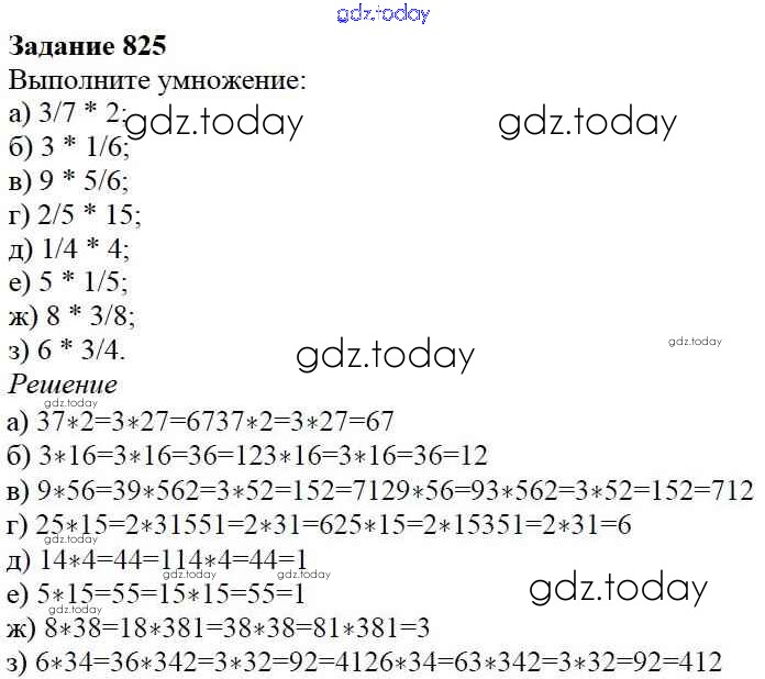 На страницах сайта gdz.today вы найдете учебный и вспомогательный материал, направленный на улучшения знаний школьной программы. ГДЗ - онлайн мир знаний 9.4. Умножение дробей Глава 9. Действия с дробями 825 Учебнику по Математике для 5 класса Дорофеев, Шарыгин Просвещение 2015