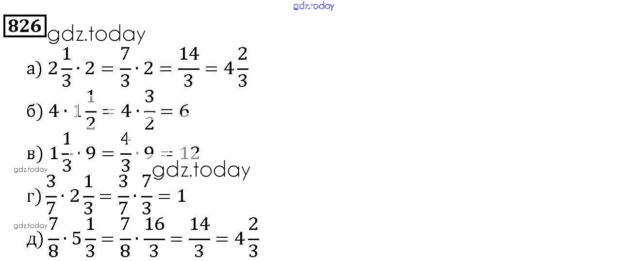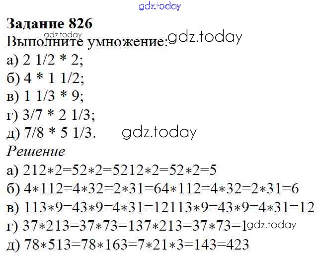 На страницах сайта gdz.today вы найдете учебный и вспомогательный материал, направленный на улучшения знаний школьной программы. ГДЗ - онлайн мир знаний 9.4. Умножение дробей Глава 9. Действия с дробями 826 Учебнику по Математике для 5 класса Дорофеев, Шарыгин Просвещение 2015