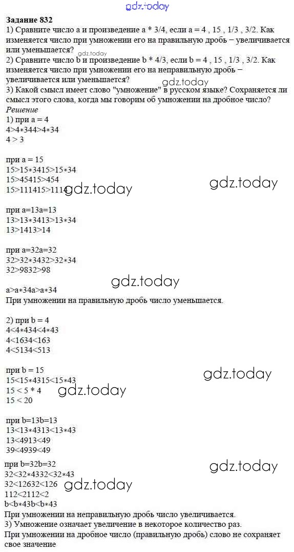 На страницах сайта gdz.today вы найдете учебный и вспомогательный материал, направленный на улучшения знаний школьной программы. ГДЗ - онлайн мир знаний 9.4. Умножение дробей Глава 9. Действия с дробями 832 Учебнику по Математике для 5 класса Дорофеев, Шарыгин Просвещение 2015