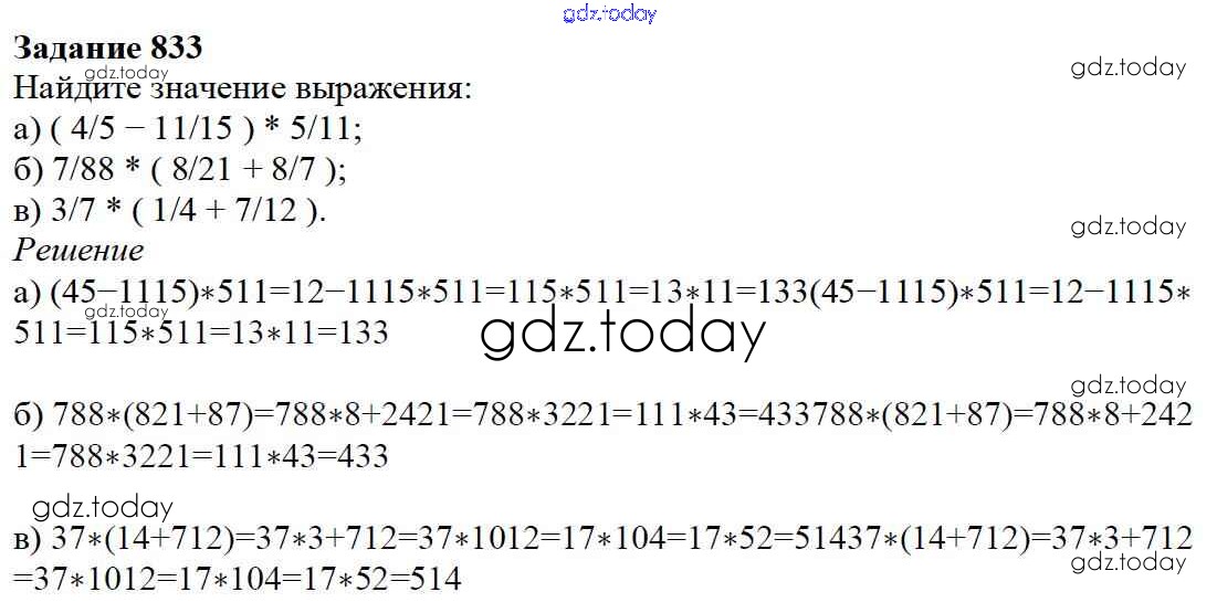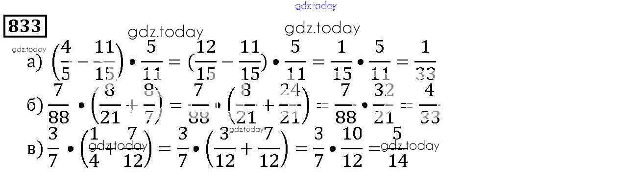 На страницах сайта gdz.today вы найдете учебный и вспомогательный материал, направленный на улучшения знаний школьной программы. ГДЗ - онлайн мир знаний 9.4. Умножение дробей Глава 9. Действия с дробями 833 Учебнику по Математике для 5 класса Дорофеев, Шарыгин Просвещение 2015
