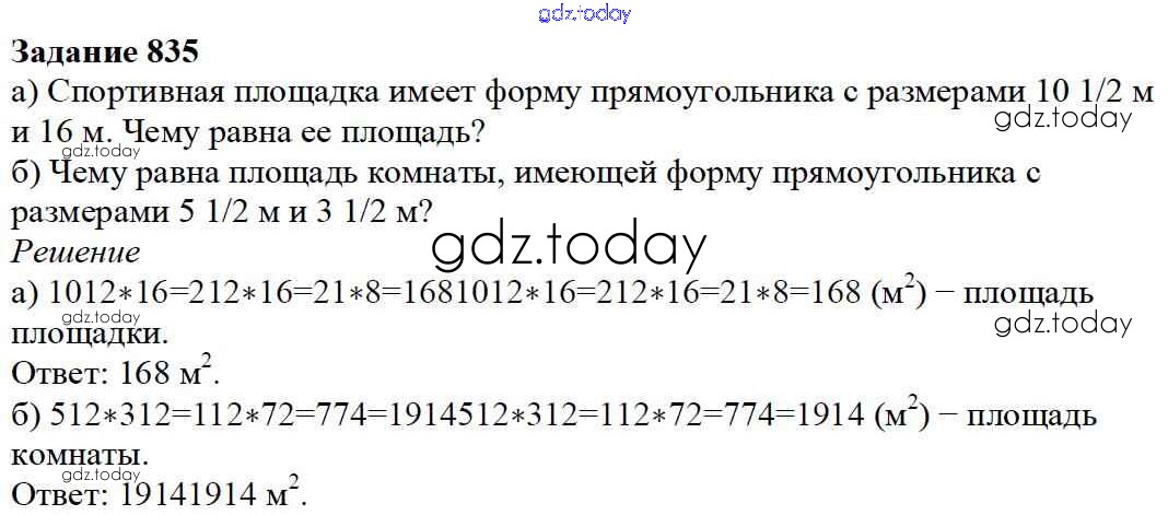 На страницах сайта gdz.today вы найдете учебный и вспомогательный материал, направленный на улучшения знаний школьной программы. ГДЗ - онлайн мир знаний 9.4. Умножение дробей Глава 9. Действия с дробями 835 Учебнику по Математике для 5 класса Дорофеев, Шарыгин Просвещение 2015