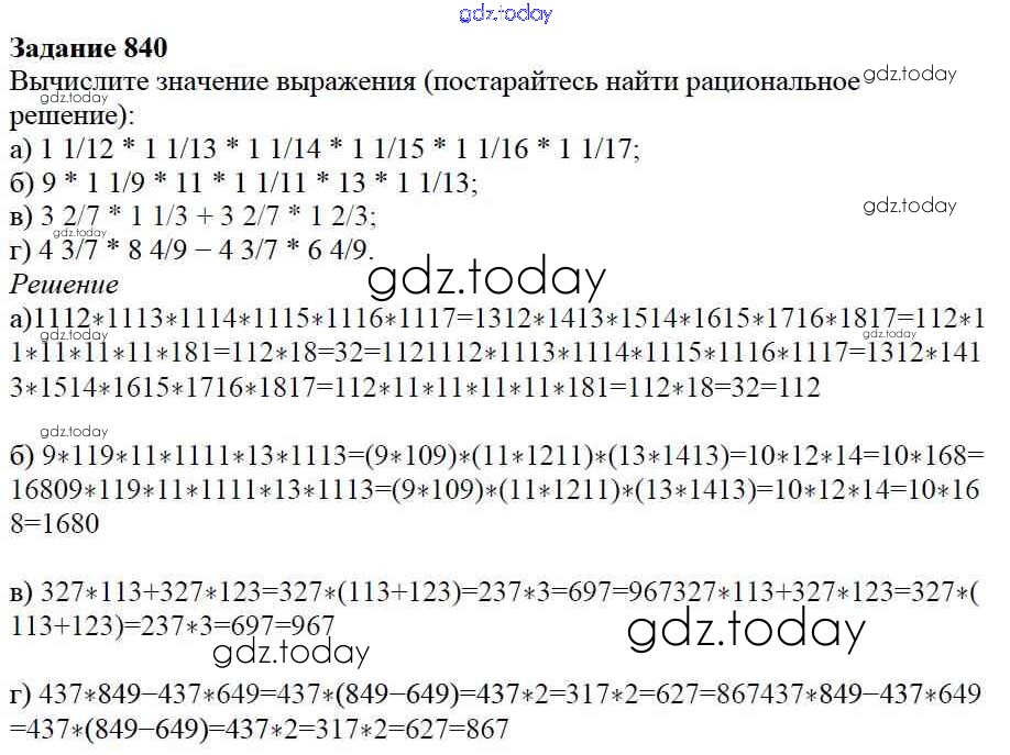 На страницах сайта gdz.today вы найдете учебный и вспомогательный материал, направленный на улучшения знаний школьной программы. ГДЗ - онлайн мир знаний 9.4. Умножение дробей Глава 9. Действия с дробями 840 Учебнику по Математике для 5 класса Дорофеев, Шарыгин Просвещение 2015