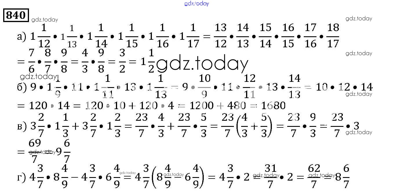 Ответы к 9.4. Умножение дробей Глава 9. Действия с дробями 840 Учебнику по Математике для 5 класса Дорофеев, Шарыгин Просвещение 2015