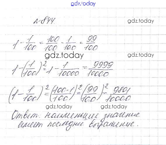 Ответы к 9.4. Умножение дробей Глава 9. Действия с дробями 844 Учебнику по Математике для 5 класса Дорофеев, Шарыгин Просвещение 2015