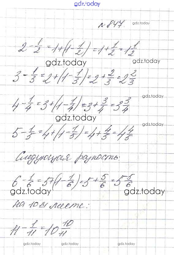 На страницах сайта gdz.today вы найдете учебный и вспомогательный материал, направленный на улучшения знаний школьной программы. ГДЗ - онлайн мир знаний 9.4. Умножение дробей Глава 9. Действия с дробями 847 Учебнику по Математике для 5 класса Дорофеев, Шарыгин Просвещение 2015