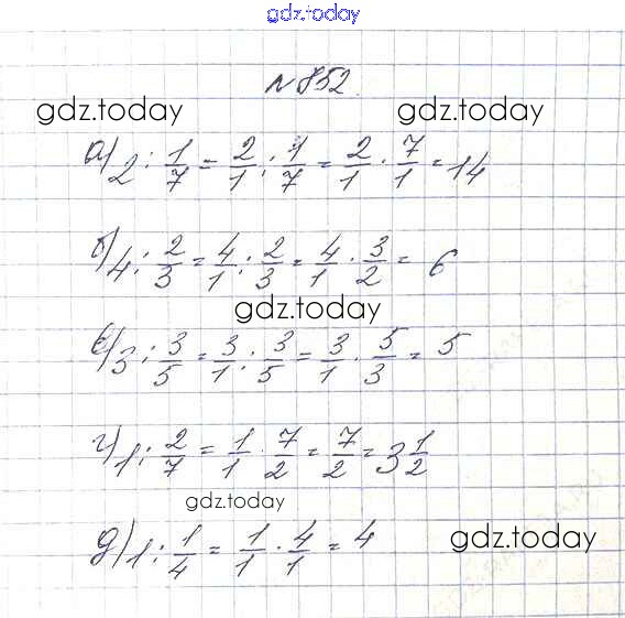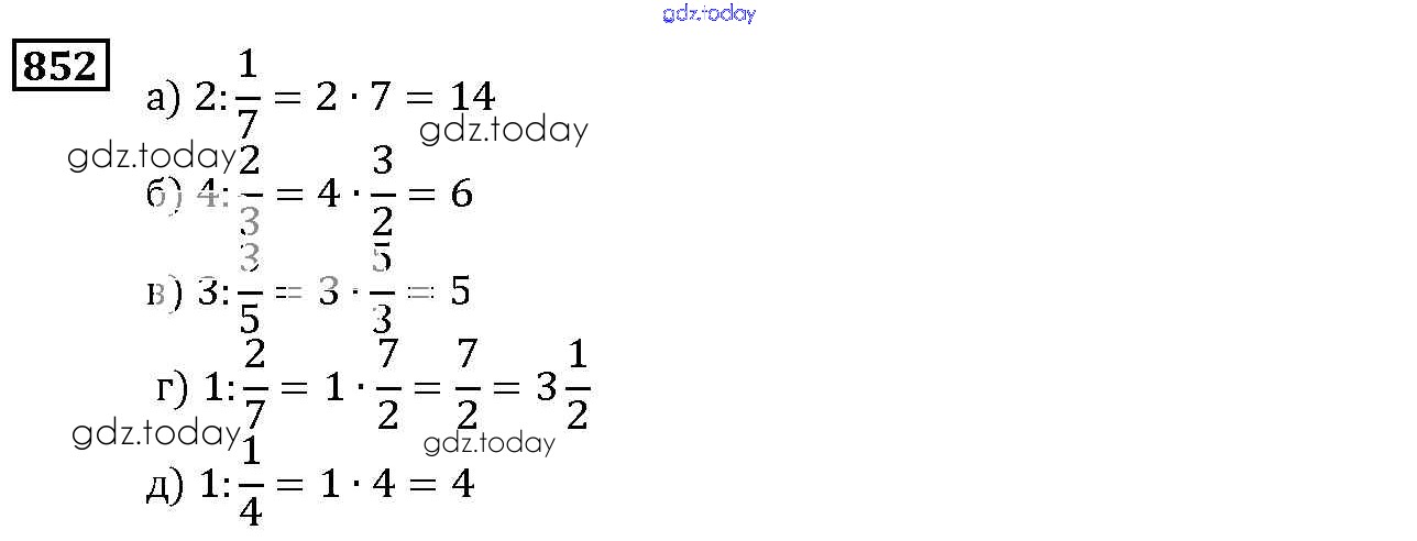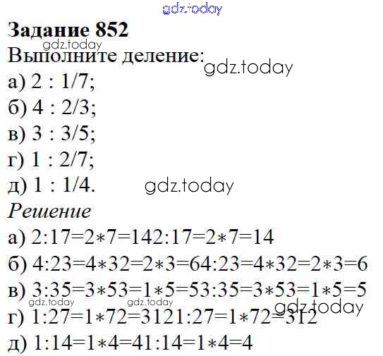 На страницах сайта gdz.today вы найдете учебный и вспомогательный материал, направленный на улучшения знаний школьной программы. ГДЗ - онлайн мир знаний 9.5. Деление дробей Глава 9. Действия с дробями 852 Учебнику по Математике для 5 класса Дорофеев, Шарыгин Просвещение 2015