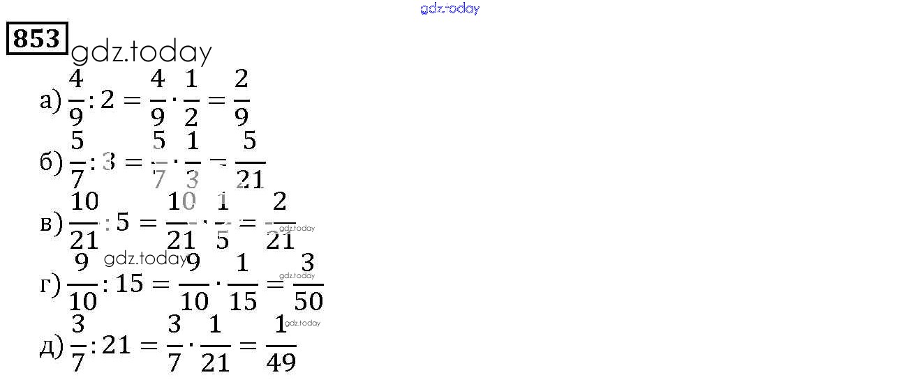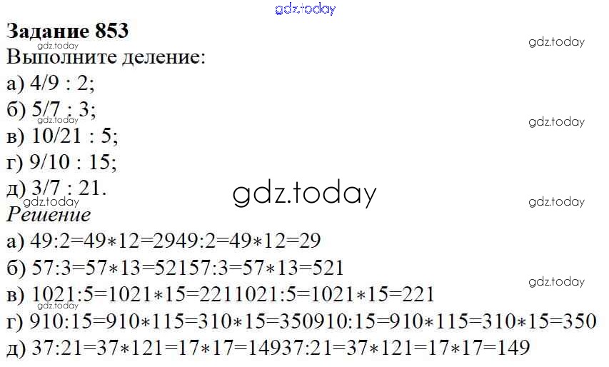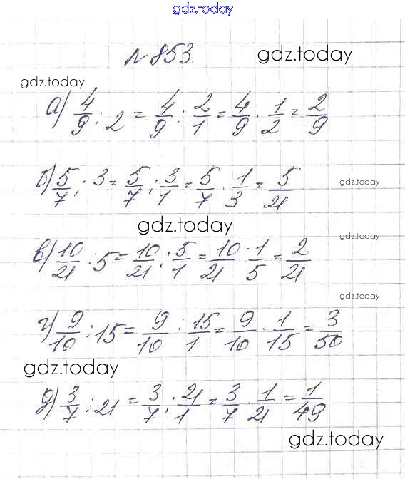 На страницах сайта gdz.today вы найдете учебный и вспомогательный материал, направленный на улучшения знаний школьной программы. ГДЗ - онлайн мир знаний 9.5. Деление дробей Глава 9. Действия с дробями 853 Учебнику по Математике для 5 класса Дорофеев, Шарыгин Просвещение 2015