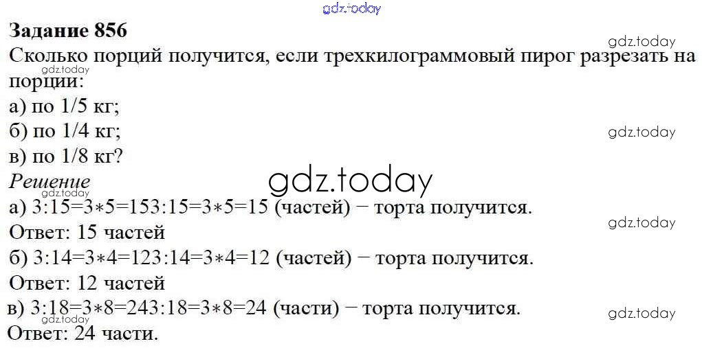 Ответы к 9.5. Деление дробей Глава 9. Действия с дробями 856 Учебнику по Математике для 5 класса Дорофеев, Шарыгин Просвещение 2015