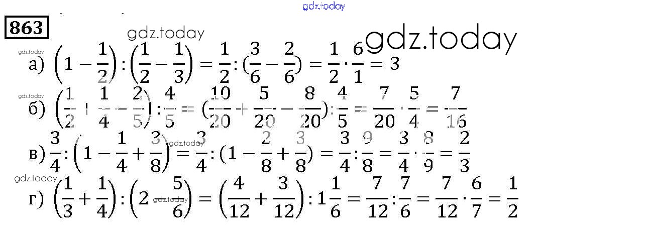 Ответы к 9.5. Деление дробей Глава 9. Действия с дробями 863 Учебнику по Математике для 5 класса Дорофеев, Шарыгин Просвещение 2015