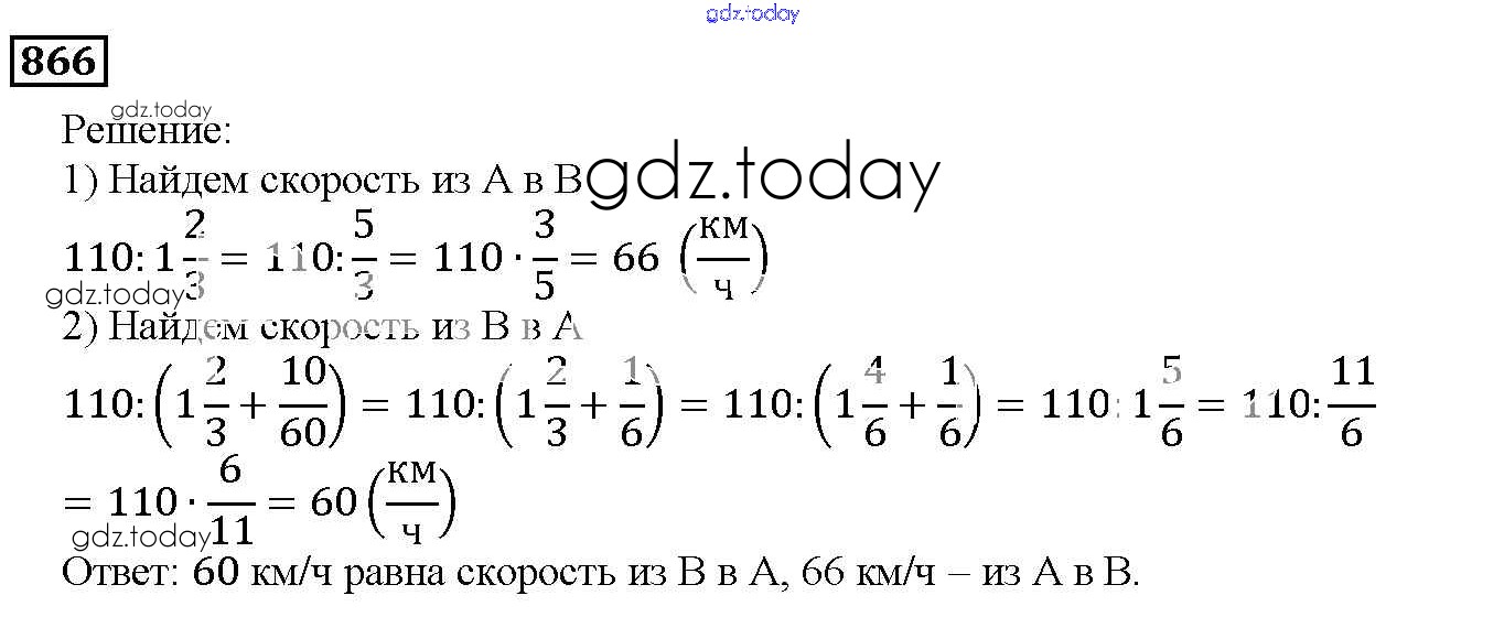 Ответы к 9.5. Деление дробей Глава 9. Действия с дробями 866 Учебнику по Математике для 5 класса Дорофеев, Шарыгин Просвещение 2015