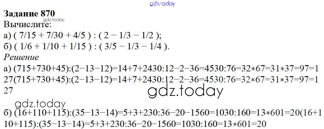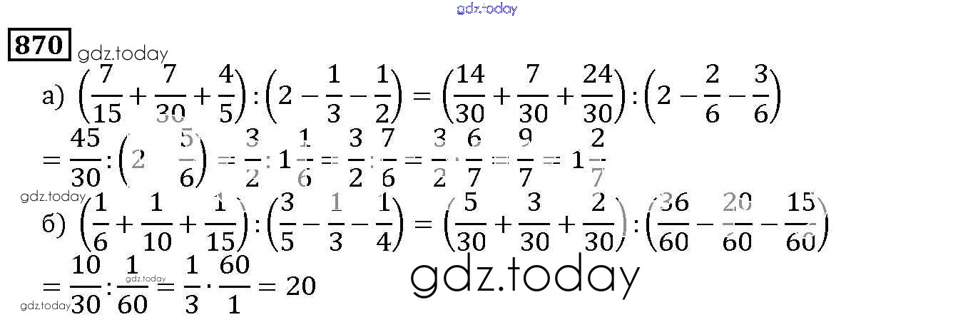 На страницах сайта gdz.today вы найдете учебный и вспомогательный материал, направленный на улучшения знаний школьной программы. ГДЗ - онлайн мир знаний 9.5. Деление дробей Глава 9. Действия с дробями 870 Учебнику по Математике для 5 класса Дорофеев, Шарыгин Просвещение 2015