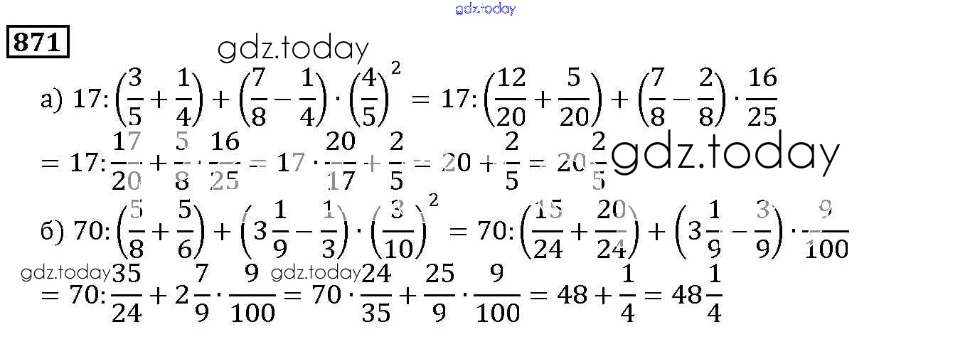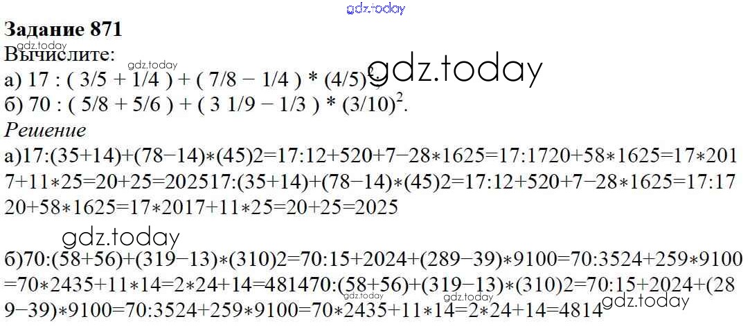 На страницах сайта gdz.today вы найдете учебный и вспомогательный материал, направленный на улучшения знаний школьной программы. ГДЗ - онлайн мир знаний 9.5. Деление дробей Глава 9. Действия с дробями 871 Учебнику по Математике для 5 класса Дорофеев, Шарыгин Просвещение 2015