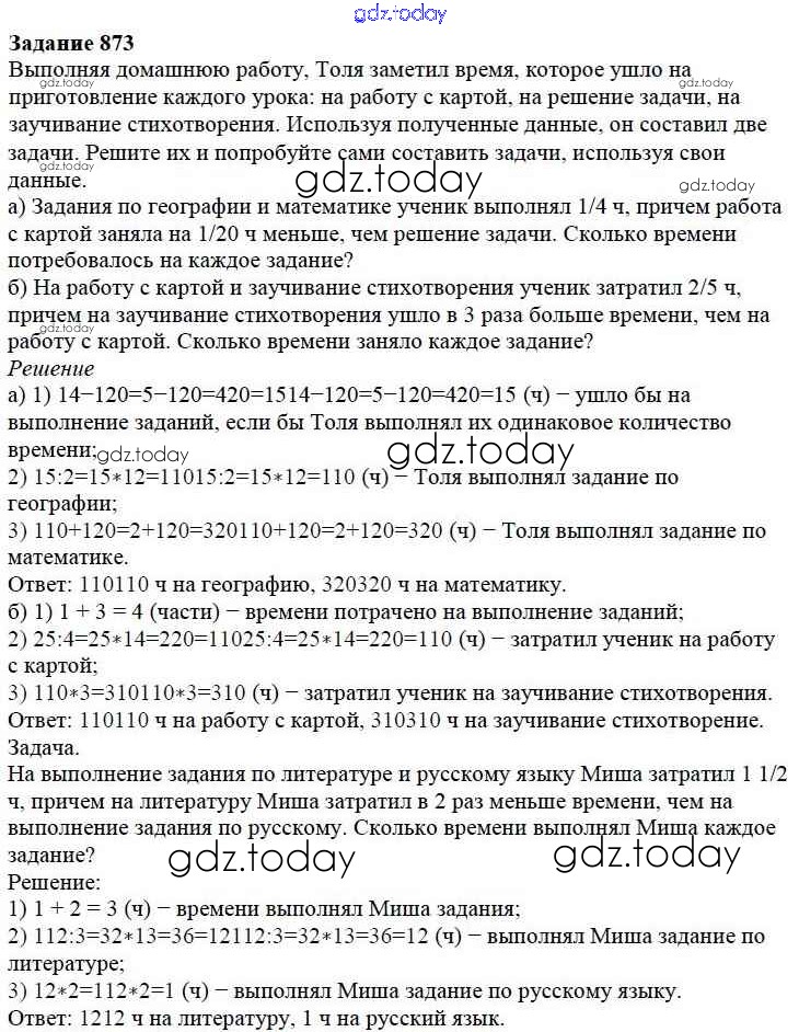 На страницах сайта gdz.today вы найдете учебный и вспомогательный материал, направленный на улучшения знаний школьной программы. ГДЗ - онлайн мир знаний 9.5. Деление дробей Глава 9. Действия с дробями 873 Учебнику по Математике для 5 класса Дорофеев, Шарыгин Просвещение 2015