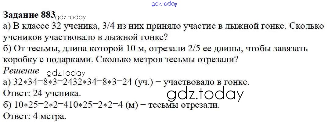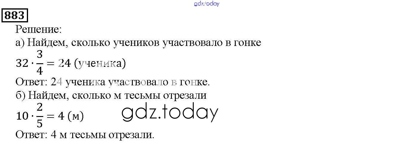 На страницах сайта gdz.today вы найдете учебный и вспомогательный материал, направленный на улучшения знаний школьной программы. ГДЗ - онлайн мир знаний 9.6. Нахождение части целого и целого по части Глава 9. Действия с дробями 883 Учебнику по Математике для 5 класса Дорофеев, Шарыгин Просвещение 2015