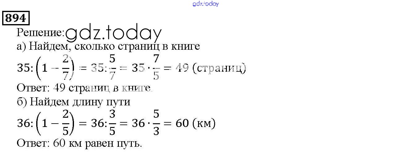 На страницах сайта gdz.today вы найдете учебный и вспомогательный материал, направленный на улучшения знаний школьной программы. ГДЗ - онлайн мир знаний 9.6. Нахождение части целого и целого по части Глава 9. Действия с дробями 894 Учебнику по Математике для 5 класса Дорофеев, Шарыгин Просвещение 2015
