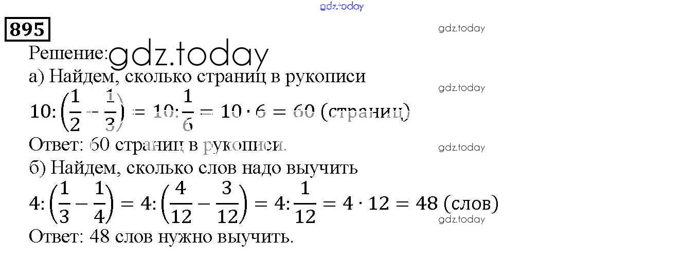 На страницах сайта gdz.today вы найдете учебный и вспомогательный материал, направленный на улучшения знаний школьной программы. ГДЗ - онлайн мир знаний 9.6. Нахождение части целого и целого по части Глава 9. Действия с дробями 895 Учебнику по Математике для 5 класса Дорофеев, Шарыгин Просвещение 2015