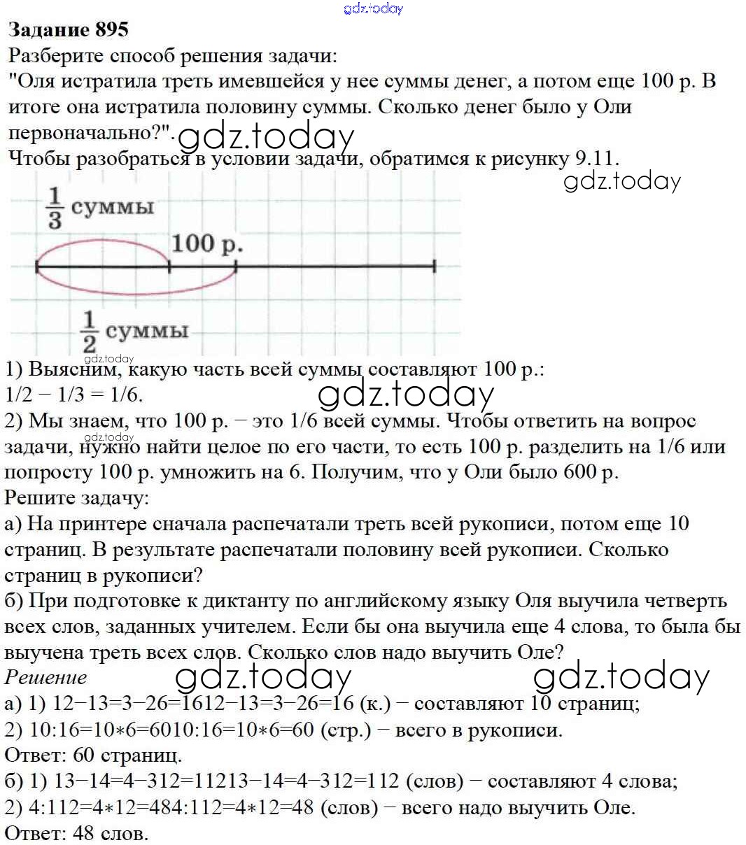 Ответы к 9.6. Нахождение части целого и целого по части Глава 9. Действия с дробями 895 Учебнику по Математике для 5 класса Дорофеев, Шарыгин Просвещение 2015