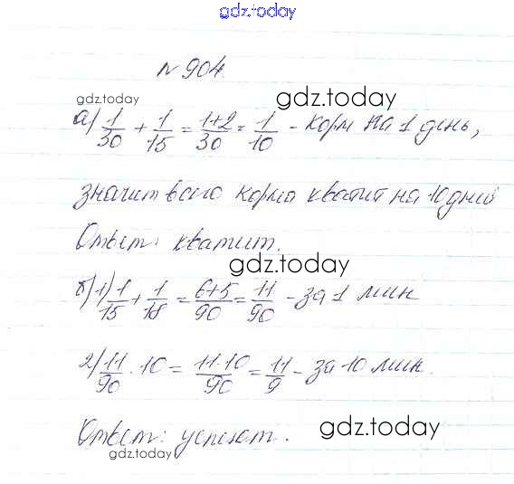 Ответы к 9.7. Задачи на совместную работу Глава 9. Действия с дробями 904 Учебнику по Математике для 5 класса Дорофеев, Шарыгин Просвещение 2015