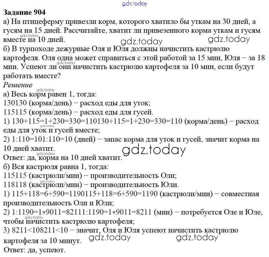 На страницах сайта gdz.today вы найдете учебный и вспомогательный материал, направленный на улучшения знаний школьной программы. ГДЗ - онлайн мир знаний 9.7. Задачи на совместную работу Глава 9. Действия с дробями 904 Учебнику по Математике для 5 класса Дорофеев, Шарыгин Просвещение 2015