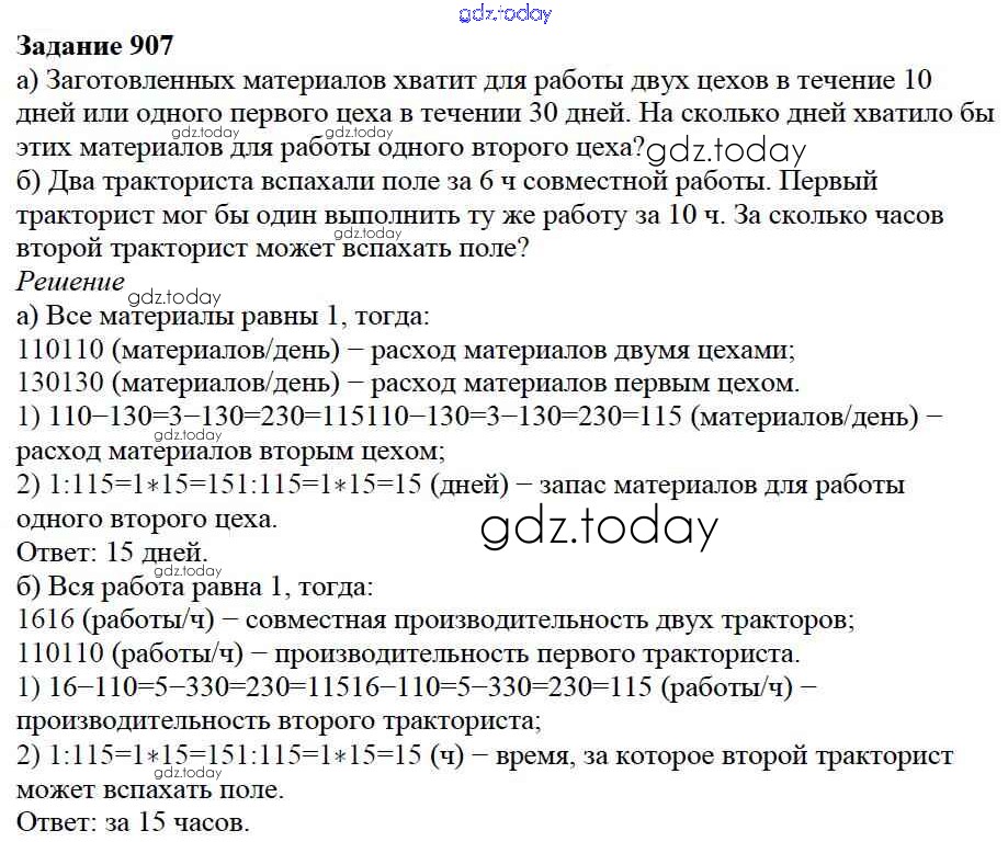 На страницах сайта gdz.today вы найдете учебный и вспомогательный материал, направленный на улучшения знаний школьной программы. ГДЗ - онлайн мир знаний 9.7. Задачи на совместную работу Глава 9. Действия с дробями 907 Учебнику по Математике для 5 класса Дорофеев, Шарыгин Просвещение 2015