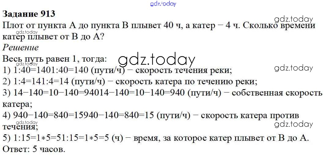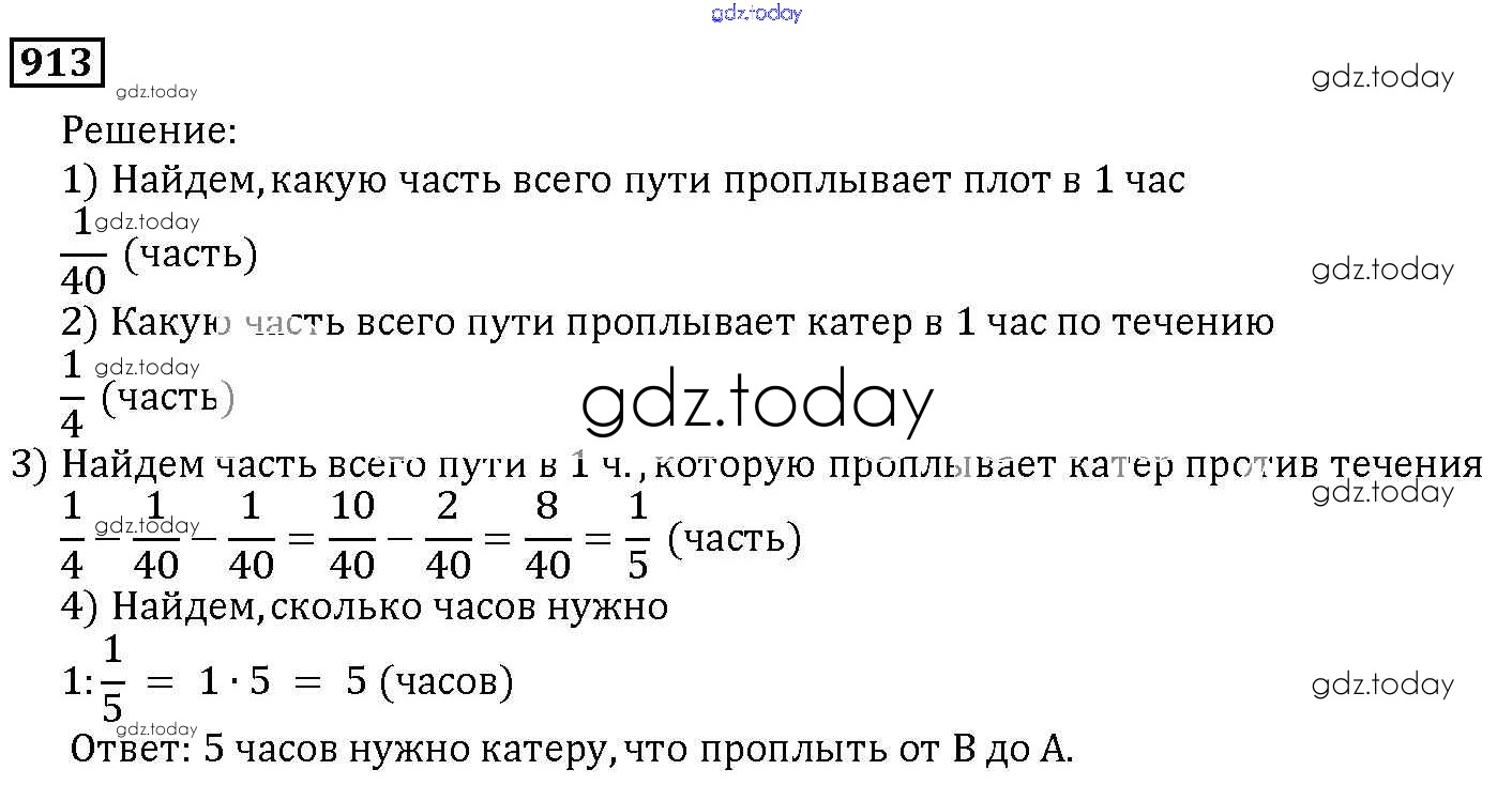 На страницах сайта gdz.today вы найдете учебный и вспомогательный материал, направленный на улучшения знаний школьной программы. ГДЗ - онлайн мир знаний 9.7. Задачи на совместную работу Глава 9. Действия с дробями 913 Учебнику по Математике для 5 класса Дорофеев, Шарыгин Просвещение 2015